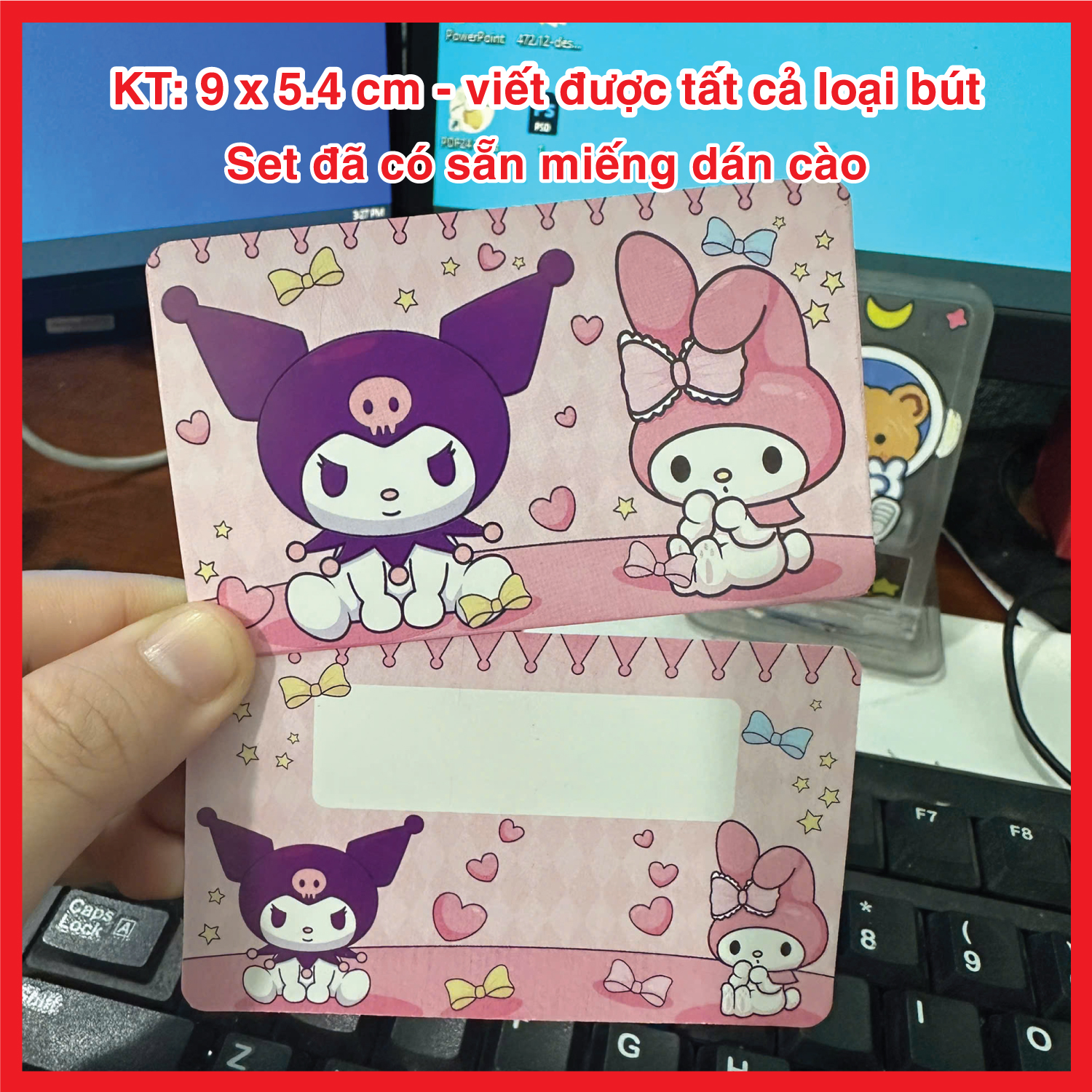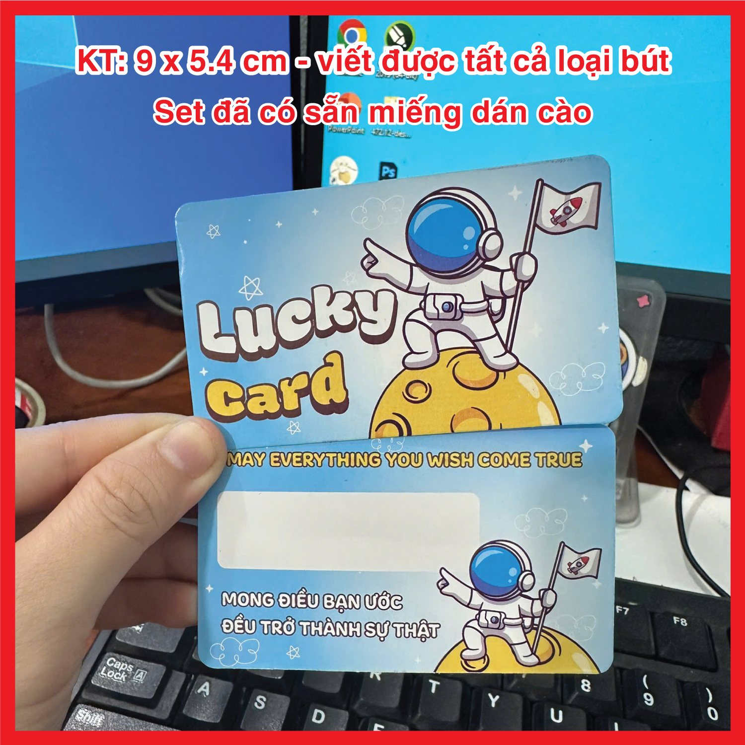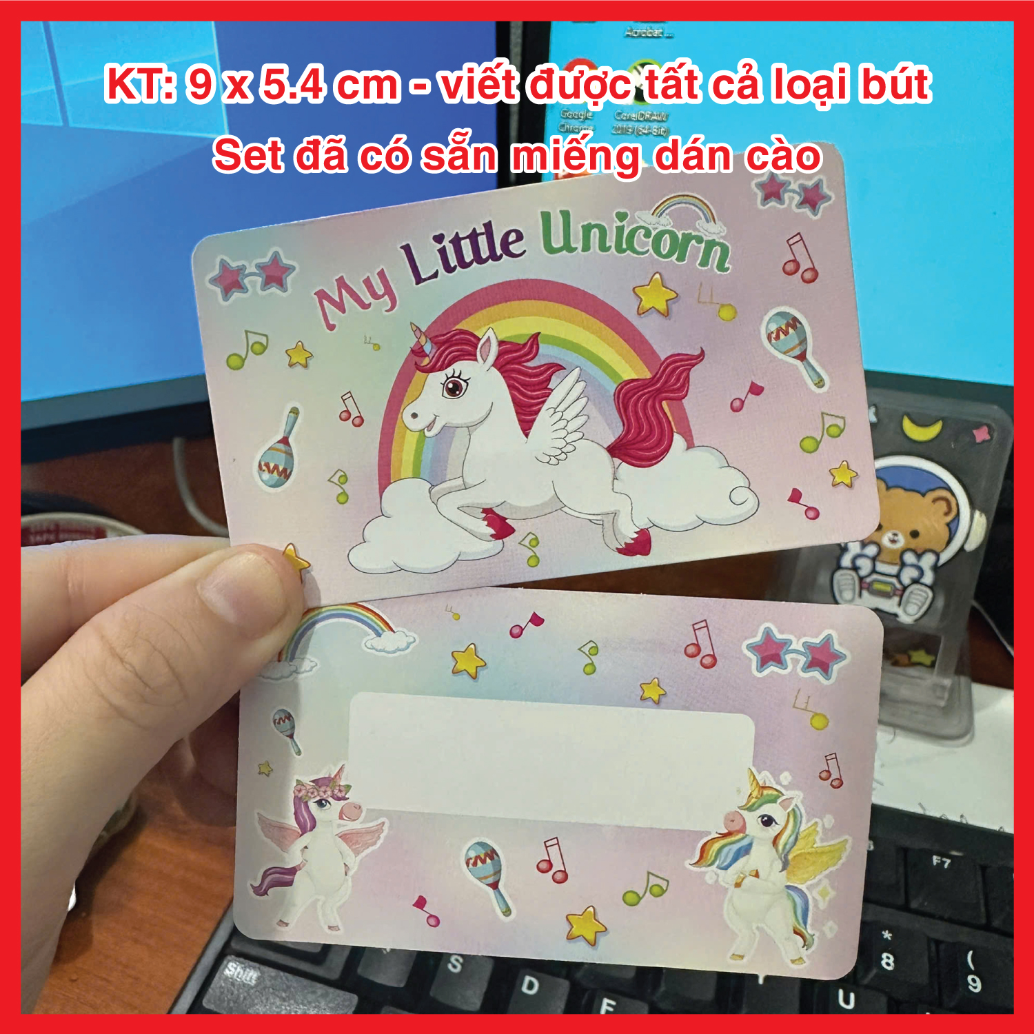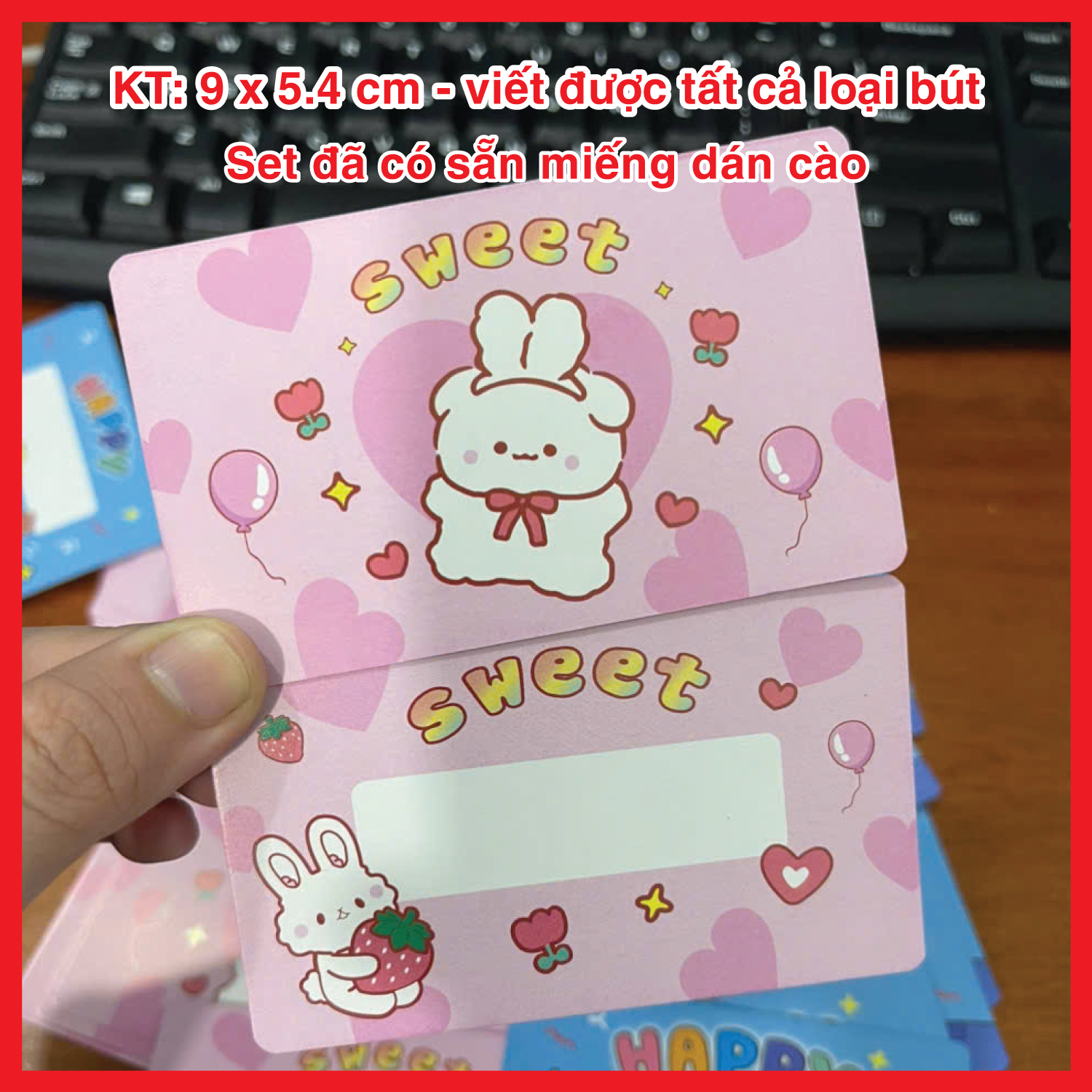 – Set thẻ đã có sẵn miếng dán cào, viết được tất cả các loại bút
