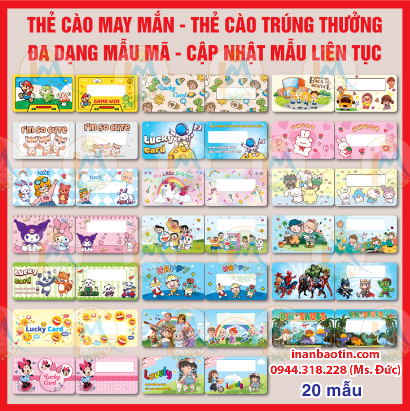 MỘT SỐ MẪU THẺ CÀO MAY MẮN CÓ SẴN